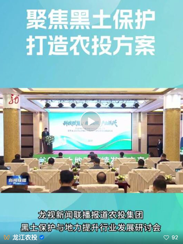 1月27日,由黑龙江省农业投资集团有限公司主办,黑龙江省农业开发建设集团有限公司联合承办的,以“科技赋能 标准引领 产业振兴”为主题的黑土保护与地力提升行业发展研讨会在哈尔滨市成功举办。会议的顺利召开,获得了社会各界的广泛关注,黑龙江省电视台、黑龙江日报等主流权威媒体,全程跟进报道,积极传递会议成果与行业声音。