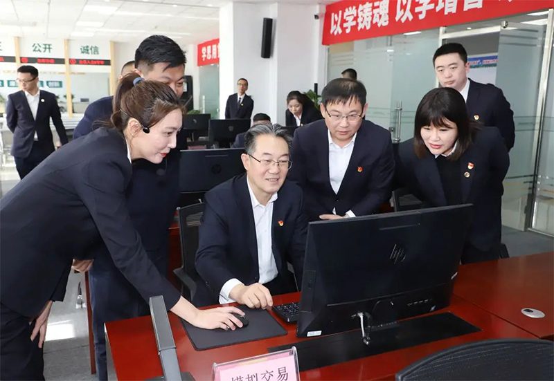 5月5日,省委主题教育第二十三巡回指导组组长张波一行深入农投集团及所属企业交易市场调研指导主题教育工作,农投集团党委书记、董事长常玉春,农投集团党委副书记、工会主席郝雪岩陪同调研。