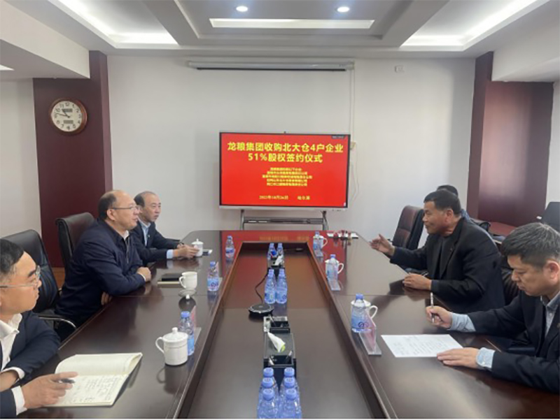 近日,黑龙江省粮食产业集团有限公司举行收购北大仓集团有限公司所属4户企业51%股权签约仪式,龙粮集团党委书记、董事长耿成君主持仪式并讲话。北大仓集团副总经理李学武,北大仓粮油副总经理马明、人力总监刘维志出席仪式并致辞,龙粮集团副总经理、总会计师祖义参加会议。