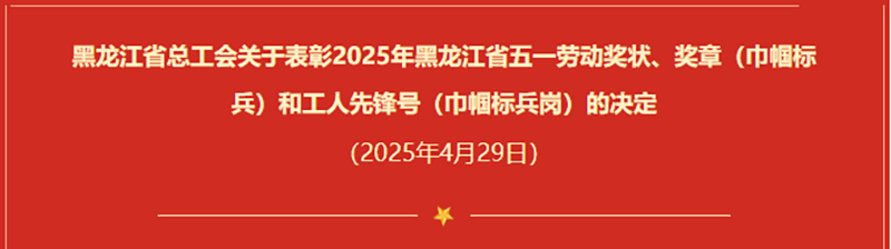 农投集团荣获2025年黑龙江省五一劳动奖状和工人先锋号两项殊荣