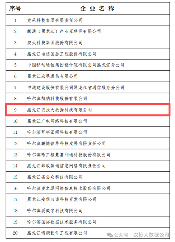 喜报丨连续三年!农投大数据公司荣获“2025年黑龙江省互联网企业20强”!