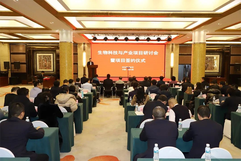 为推进黑龙江省生物经济产业园项目建设和微藻蛋白生物科技创新和产业化应用,1月8日,黑龙江省农投生物产业投资有限公司2024年生物科技与产业项目研讨会暨签约仪式在哈尔滨金谷大厦举行。清华大学、中国科学院等多所国内著名院校的专家学者、金融投资机构、政府部门代表50余人参加此次活动。