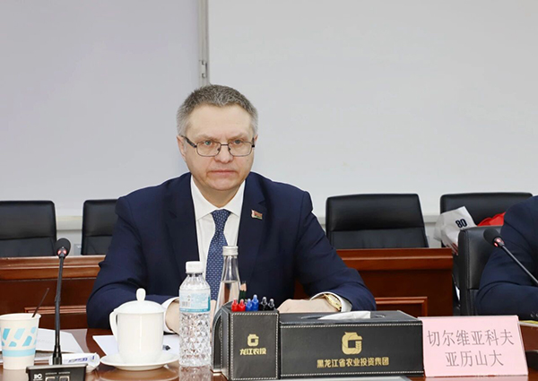 杨世志对切尔维亚科夫·亚历山大一行的到访表示热烈欢迎,并介绍了黑龙江省农业发展优势及农投集团发展布局。他表示,黑龙江作为中国粮食生产第一大省,素有 “北大仓” 美誉,肩负着保障国家粮食安全的重大使命,正全力推进农业强省建设。农投集团作为省属国有大型农业投资集团,自成立以来,聚焦省级农业资源整合平台、粮食安全保障主载体等四大核心功能,构建起覆盖农业全产业链的发展格局,在农业产业升级、乡村振兴赋能等方面发挥着主力军作用。中白两国传统友谊历久弥坚,农业合作基础坚实、前景广阔。白俄罗斯在钾肥生产、泥炭土开发、农业机械制造等领域的产业优势,与龙江农业发展需求、农投集团业务布局高度契合。农投集团愿以此次对接为起点,与白方在核心领域开展全方位、深层次合作,实现优势互补、互利共赢,携手共筑向北开放新高地。